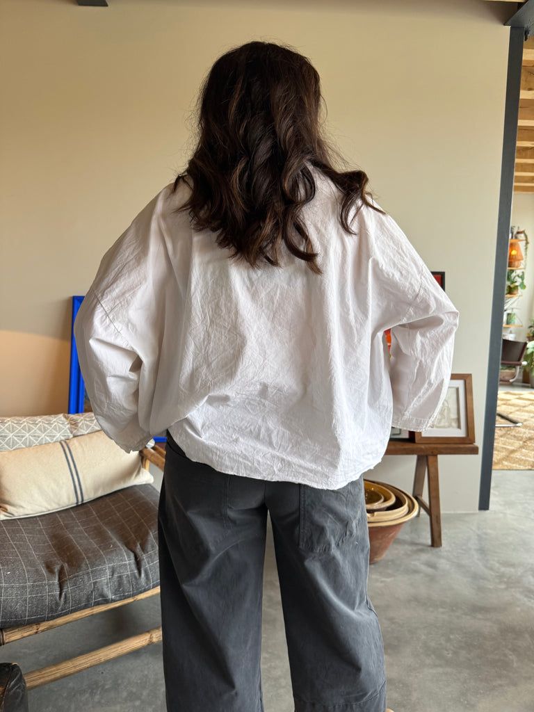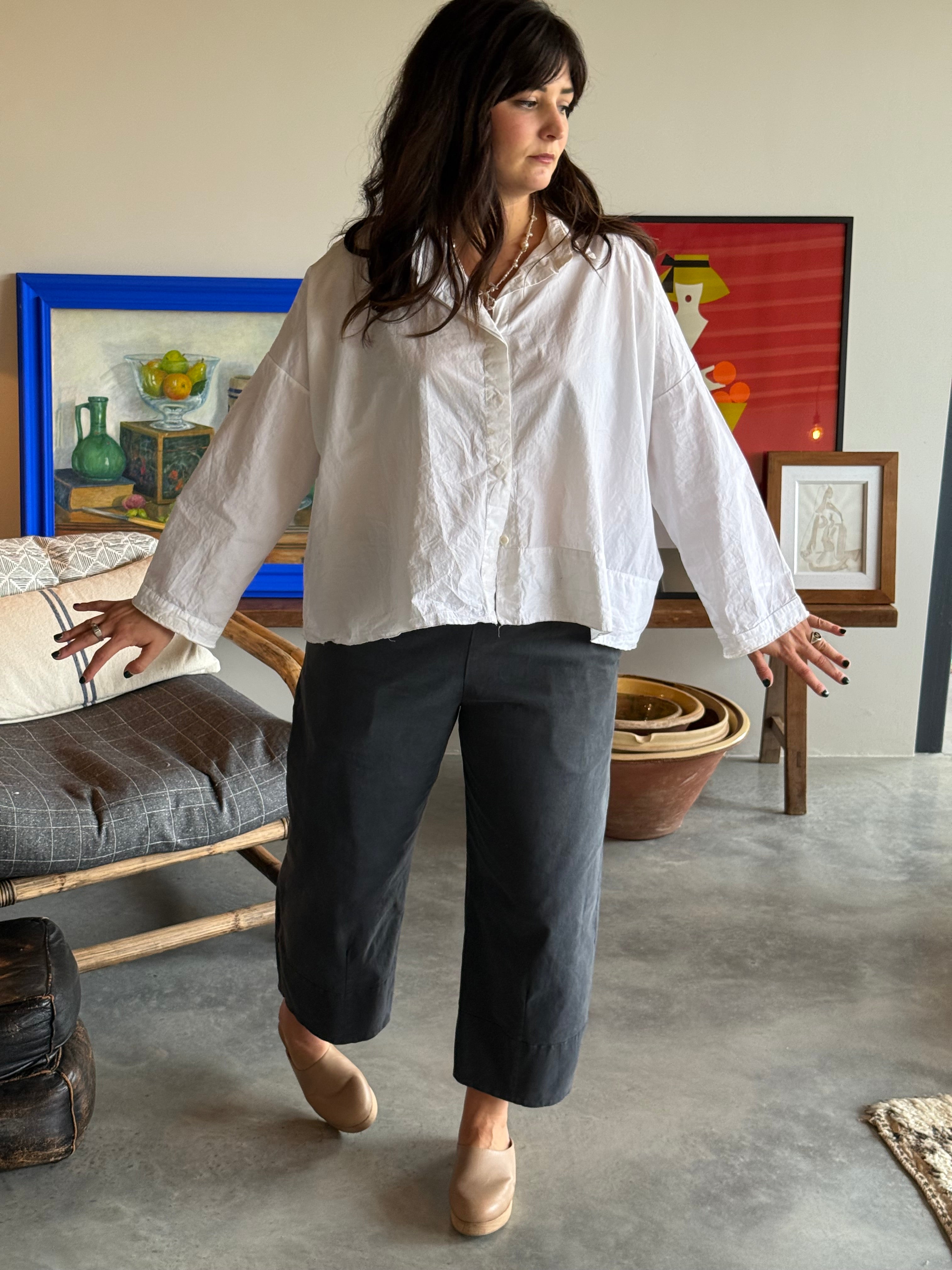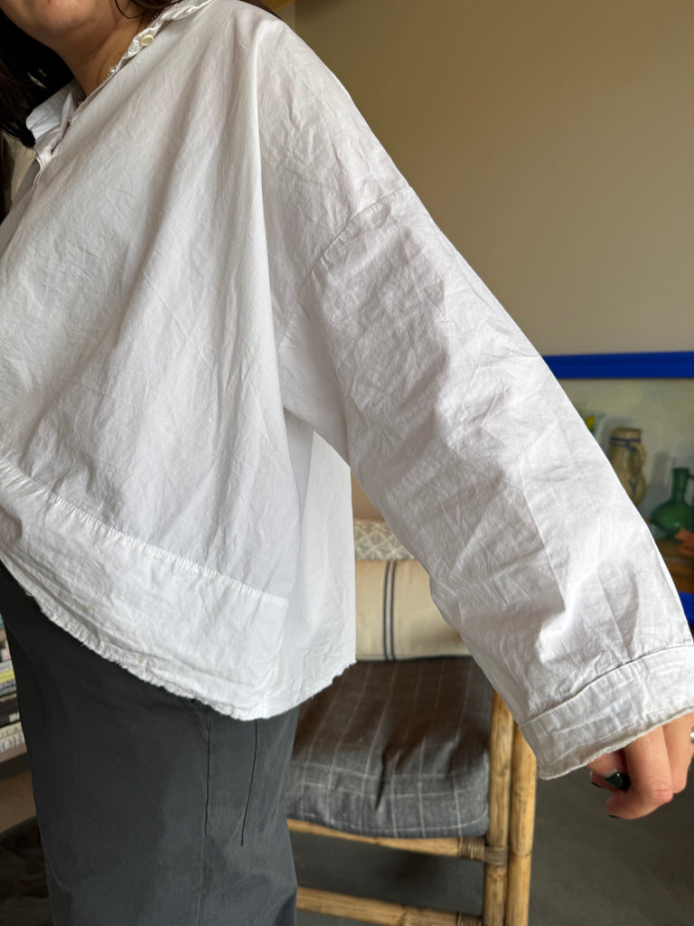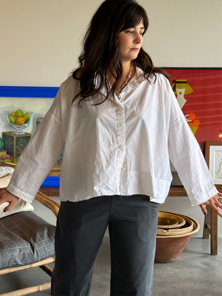 Lovely relaxed fit cotton shirt from Aequamente. This is one of their gorgeous staples. The wide body but neater sleeve with the extra panel of fabric. Just the right length, still covers your belly with arms in the air!!!